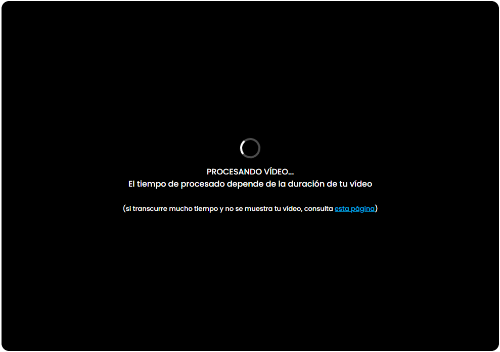 Qué ocurre: si el vídeo no se muestra, pasa tiempo y se mantiene el aviso de procesando, significa que no se ha completado correctamente la subida del vídeo. Esto suele suceder cuando se produce algún corte en Internet momentáneo durante la subida o cuando se ha eliminado el vídeo desde el repositorio.